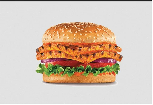 Corn Dusted Buns, Egg-less Peri-Peri Sauce, Lettuce, Onion, Tomato slices, Jalapenos, Marinated Paneer Slices, Smoked Cheese slice