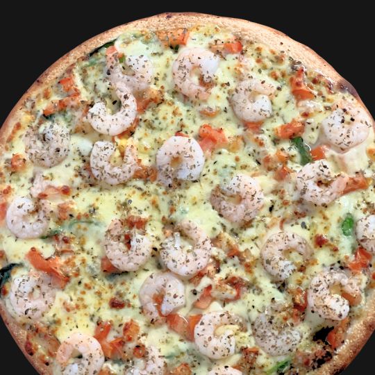 Cheesy garlic base, baby spinach, fresh tomatoes, prawns, cheese mozzarella, oregano